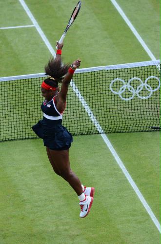 CNTV综合消息:2012伦敦奥运网球比赛进入最后的收官阶段,女单决赛中美国黑珍珠小威廉姆斯和俄罗斯美少女莎拉波娃上演巅峰对决。状态更加出色的小威使得比赛结果早早失去悬念,连下7局的美国黑珍珠用6-0,6-1的比分完胜莎娃,摘得女单金牌的同时成就了金满贯的伟业。